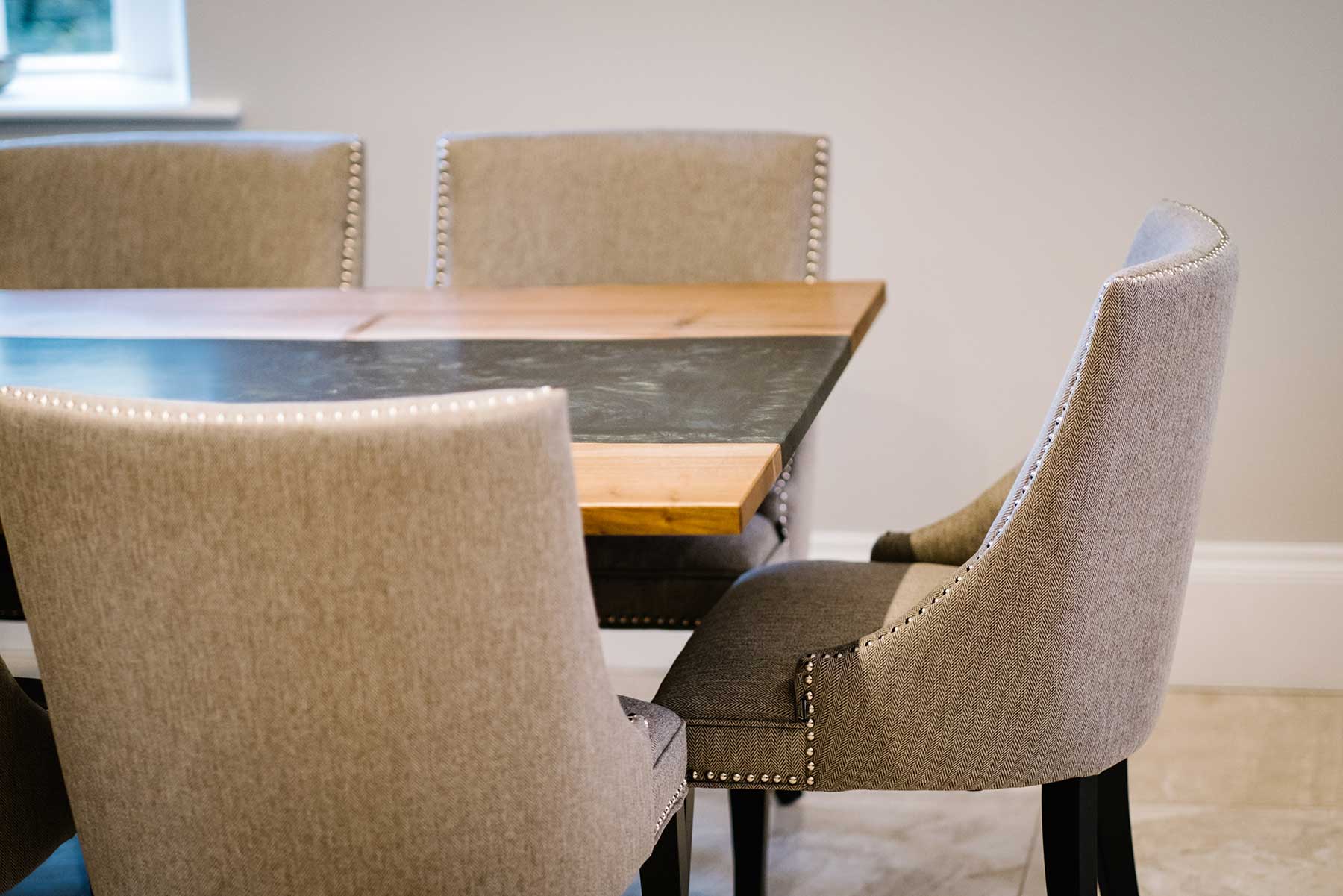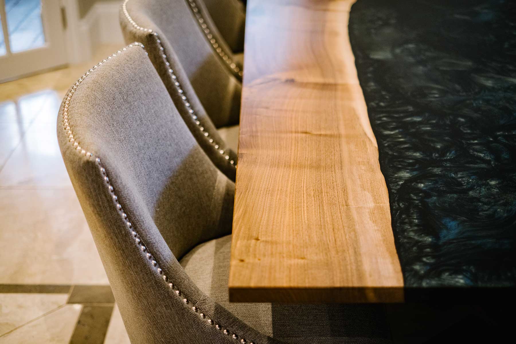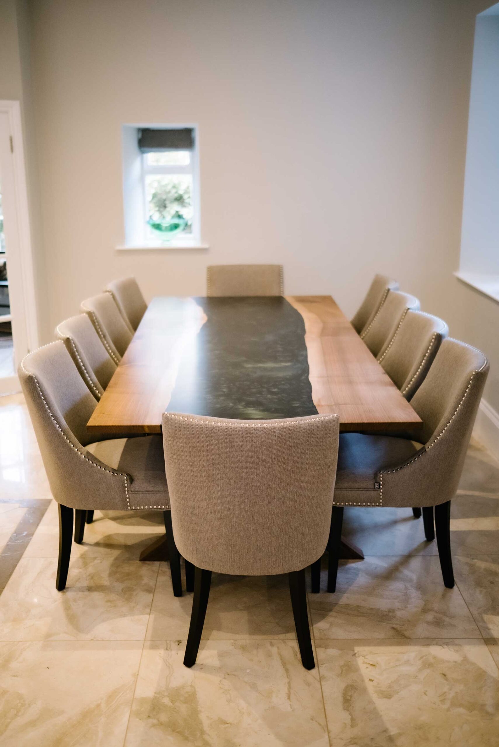 To create a stunning river resin table to seat ten; a signature element and talking point in a large kitchen diner scheme.